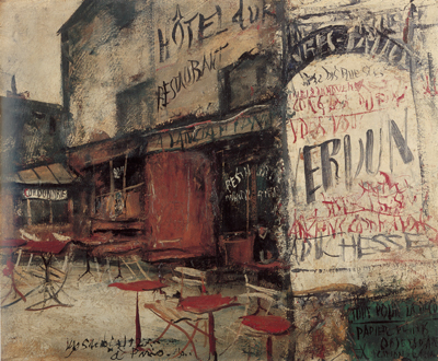 Yuzo Saeki provides a genuine glimpse into the “real separation” of “a love affair” which refused to acknowledge his deep love of Paris and France. This applies to many art pieces whereby the distance from his vantage point is noticeable by the confused lettering of certain places he depicted. Also, the manic and confused lines within some of his art may denote all the inner-confusions and utter desperation that he felt at times. Despite this, and being in extremely poor health, he could not pull himself away from a culture which inspired him to create stunning pieces of art.