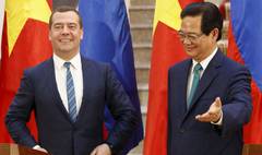 Photo: Russian Prime Minister Dmitry Medvedev and his Vietnamese counterpart, Nguyen Tan Dung, Hanoi (Source: Reuters)