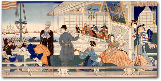 In 1854 the elites in Japan decided to end the isolationist period because of many severe factors. Not surprisingly, these new convulsions based on outside encroachment would come to alter the regional dynamics at a later date based on nationalism and imperialism. However, prior to this Sadahide could focus on more innocent themes in relation to Yokohama-e. Therefore, in the late 1850s and early 1860s his art depicted foreign nationals and other areas related to new aspects of culture that was entering Japan.