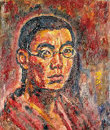 Indeed, in one self-portrait that is believed to be Kaita’s last oil painting in this field, it is noticeable that sunlight is fused with blood red. Hence, Kaita fully understood that death was nearing and having tuberculosis then “blood red” was clearly appropriate. Sadly, the ravages of ill health “cut this flower down before blooming.” However, his strong eyes – despite the clock ticking in his last oil self-portrait – denotes “strength” and a sense of self-identity that equally flowed in his poetry.
