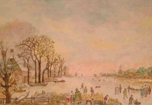 Turning back to van der Neer then Kathleen Kuiper says “Apart from a number of accomplished winter scenes—such as View of the River in Winter in the manner of Hendrik Avercamp (1585–1634), who was among the first northern Dutch painters of winter scenes—van der Neer specialized in canal and river landscapes seen by the light of sunset or early dawn or—most characteristic of all—by moonlight, as in River Scene by Moonlight. Within this somewhat limited range, van der Neer had no rival among his contemporaries. His sensitive handling of subdued light and its reflections on water and in the windows of riverside houses is unequaled. Scholars agree that he was at the height of his powers from the mid-1640s to about 1660.”
