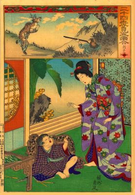 The art of Chikanobu stands out dramatically and this not only applies to the exquisite skills that he was blessed with, but also to the themes that Chikanobu highlights. He certainly provides many glimpses into Japan which relate to the “old world,” cultural aspects of Japan, and the modernization of the Meiji period.