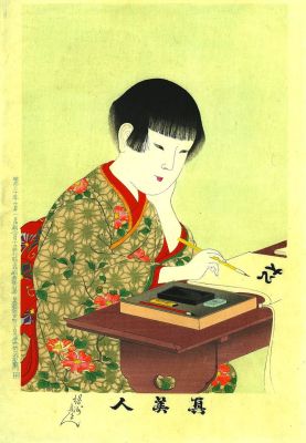 Other adorable print series include “Chiyoda no Ooku” (Court Ladies of the Chiyoda Palace) and “Shin Bijin” (True Beauties). Of course, Chikanobu produced many amazing pieces of art but both the above-named series relate to genuine aspects of female beauty in Japan. This is highlighted by traditional clothing to the changing nature of the time which applies to Western dress styles.