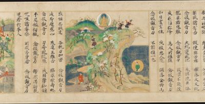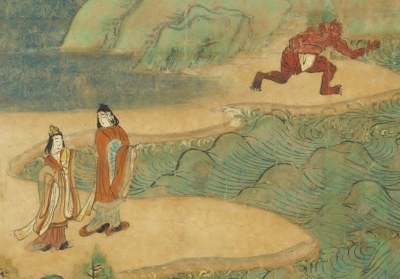 The Metropolitan Museum of Art in the United States says elegantly, “According to the calligrapher Sugawara-no-Mitsushige’s inscription, this scroll was made in the first year of the Shoka era (1257) and was modeled after a Chinese Song-dynasty printed book dated 1208. Although the compositions and the figural and architectural motifs of this version reflect Chinese pictorial traditions, it is clear that the anonymous artist inventively incorporated native Japanese (yamato-e) elements, especially in the manner of representing the landscapes and the fantastic beasts and demons.”