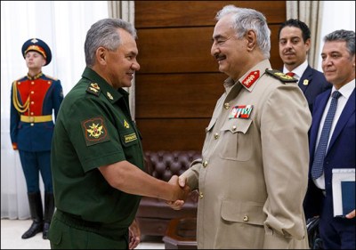Photo source: The photo in this article is the original image uploaded by The Jamestown Foundation (source: MEMRI – Russian Defense Minister Sergei Shoigu meets with Libyan Field Marshall Khalifa Haftar)