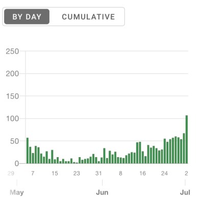 Astonishingly, the blasé Koike held a hasty conference about new infections reaching 107 – the highest since May 2. However, recent new infections have increased so why a hasty conference?