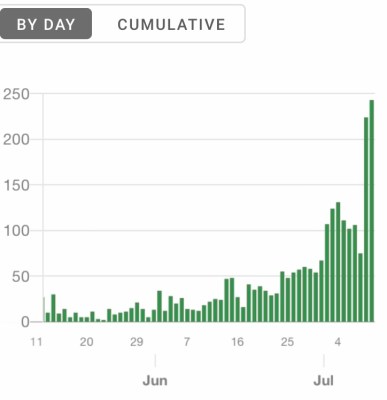 In the last two days, 224 and 243 new infections have been announced in Tokyo. Thus the highest reported number of cases in Tokyo since the coronavirus entered Japan in January.