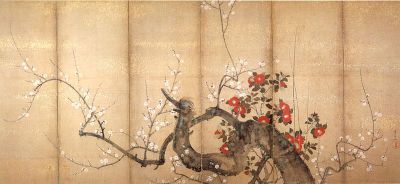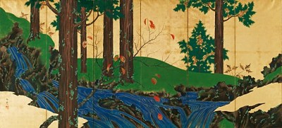 Of utmost acclaim is Kiitsu’s original screens depicting nature through the prism of the enchantment of summer and spring. Indeed, when viewing the Morning Glories and Mountain Stream in Summer and Autumn, one can feel the power of nature and rinpa at its sublime best.