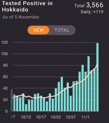 The coronavirus crisis in Hokkaido, northern Japan, is rearing up again. Yet recent new infections are new all-time highs in this part of Japan. Therefore, the longevity of the situation and new fresh highs – along with the plummeting temperature – is generating real concern.