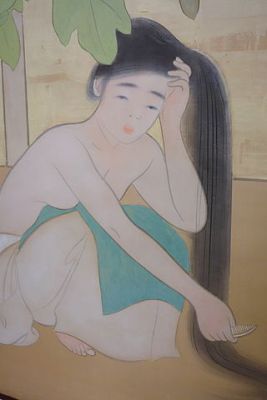 Turning back to Bakusen, the Adachi Museum says, “He studied under Takeuchi Seiho after studying at Suzuki Shonen’s organization. After entering the Kyoto City Specialist School of Painting (Kyoto City Kaiga Sen-mon Gakko) in 1909, he began focusing on Western modern art. He sought for free expression of characteristics, and developed an avant-garde art movement. In 1918, he participated in establishing the Association for the Creation of New Japanese-style Painting (Kokuga Sosaku Kyokai). He pursued the harmony between Western paintings and Japanese decoration. In his later years, he created works that offer intelligent aesthetics and warm interiority.”