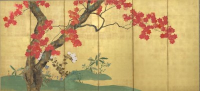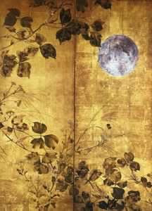 The Kyoto National Museum says, “Rinpa (alternatively spelled Rimpa) is a revivalist aesthetic style based on classical artistic and literary traditions. Rinpa works are often characterized by subject matter taken from nature or classical Japanese literature; they frequently have a decorative sensibility and sometimes abstracted design elements and distinctive techniques.”