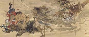 In the above art piece by Shônen, the world of Taoism is witnessed through the lens of Japan. The Kyoto National Museum says, “The image of the immortal was particularly idealized within the traditional Chinese religion of Taoism. While Taoism itself was never widely practiced in Japan, its influence can be found in a surprising number of Japanese customs (such as the tradition of giving mid-summer gifts, or ochūgen, which derives from an annual Taoist ritual). Taoist immortals have always been popular subjects for paintings in Japan, where they symbolized the wish for or the celebration of longevity.”