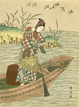 The Portland Art Museum says, “A painter and print designer, Suzuki Harunobu (1725?–1770) drew his subject matter not only from the urban entertainments of the city of Edo—what was known in his day as ukiyo-e, “pictures of the floating world”—but also from the classical poetry of China and Japan and scenes of everyday life. Harunobu’s imagery often conveys amusing subtexts that appealed especially to the cognoscenti of his day, but it was the striking color of his prints that drove his success at a critical moment in Japanese printmaking—and that has shaped his legacy ever since.”