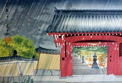In this article, the artistic focus is on Buddhist and Shinto holy places. Hence, the serenity of the art – and the religious angle seem a million miles away from events in China. Naturally, Tokuriki’s world before America’s carpet bombing of Japan – although Kyoto was spared the same large-scale military strikes – was tranquil and based on continuity.