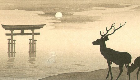 Japan art and Ohara Koson: Shinto Torii Gate and wildlife