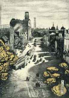 In the second art piece, a stunning lithograph of Ueno in Tokyo is created by Oda. The color scheme works a treat. Thus one can easily imagine this period of history in Tokyo.