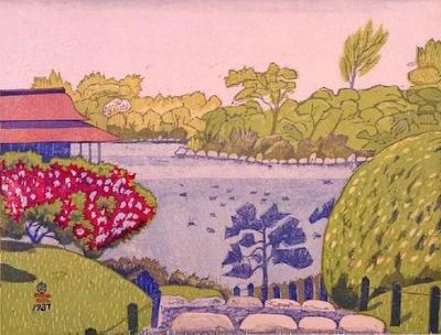 Kiyosumi Park is depicted beautifully in the first art image. Indeed, while this print was completed in the 1930s, this stunning park continues to attract people in modern Tokyo.
