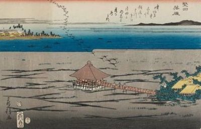 The three delightful prints in this article belong to the untitled series of Eight Views of Ômi.