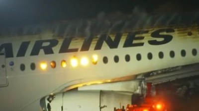 The Daily Mail reports, “Shocking footage showed the Japan Airlines jet engulfed in a raging inferno as it sat on the runway at Haneda Airport, in Ota City, Tokyo, with gouts of flame seen pouring out of the passenger windows.”