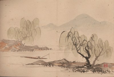He said, “Kubota was so skillful in sketching that while traveling rapidly through a country he could faithfully reproduce the salient features of an extended landscape, conformable to the general rule in sketching, that what first attracts the eye is to be painted first, all else becoming subordinate to it in the scheme.”