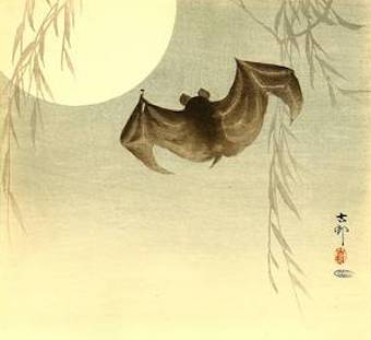 The final print is by Ohara Koson (1877-1945), who focuses on a bat flitting under the full moon.