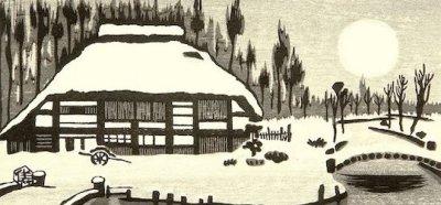 Above is a stunning print by Okuyama Gihachiro (1907-1981). He focuses on a stunning snow-filled landscape – illuminated by the striking full moon.