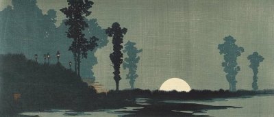 In stark contrast, Uehara Konen focuses on the moonrise in the middle of a vast open landscape. He was born during the 1870s during the Meiji Restoration (1868-1912) and died during the war period in 1940.