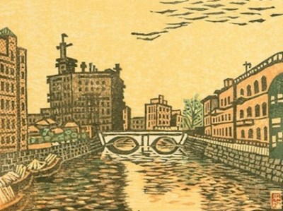 The first print is by Okuyama Gihachiro (1907-1981). He was born during the late Meiji Period (1868-1912). Accordingly, he witnessed dramatic changes to the exclusive district of Ginza throughout his lifetime.