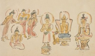 In the art above by Awashima Kangetsu (1859-1926), he focuses on delightful caricatures that connect with the world of compassion.