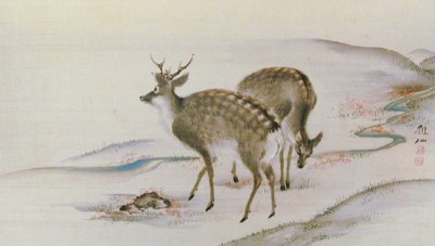 Sosen also held a deep affection for deer, creatures often associated with purity and the sacred realm of nature in Japanese aesthetics. In his works, they move silently through misty landscapes, embodying a quiet reverence for the natural world that lies at the heart of traditional Japanese art.