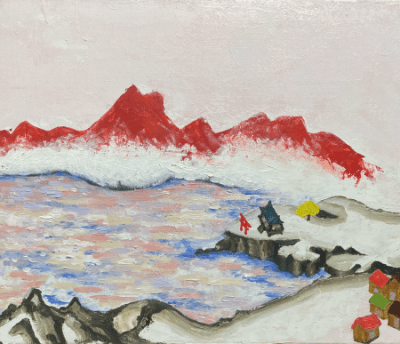 The second artwork above is by the contemporary artist Sawako Utsumi, who was born in northern Japan. Her work reflects a deep reverence for the traditions of the Kano School, a style that shaped the course of Japanese painting for centuries. Yet Utsumi’s individuality shines through in her vibrant use of color and the gentle presence of a Shinto shrine nestled within the scene, adding a spiritual and cultural dimension to the landscape.