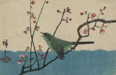 In the delicate print above, Hiroshige composes a fleeting poem in image: a warbler poised upon a plum branch. Nothing is excessive. The bird, light as breath, meets the angled bloom of the branch in a moment of suspended time. Simplicity here is not absence, but refinement — each line a quiet act of restraint, each blossom a whisper of spring’s arrival.